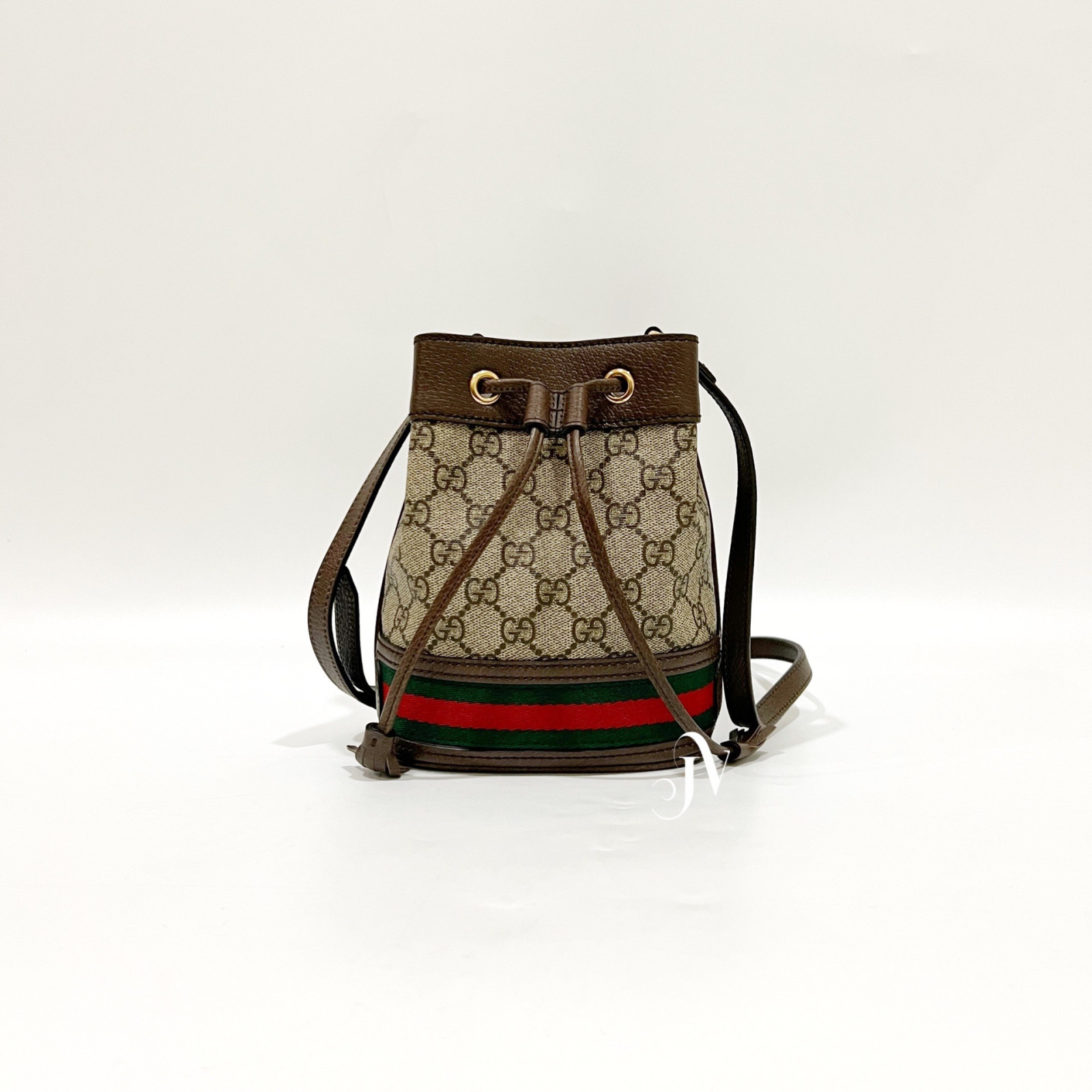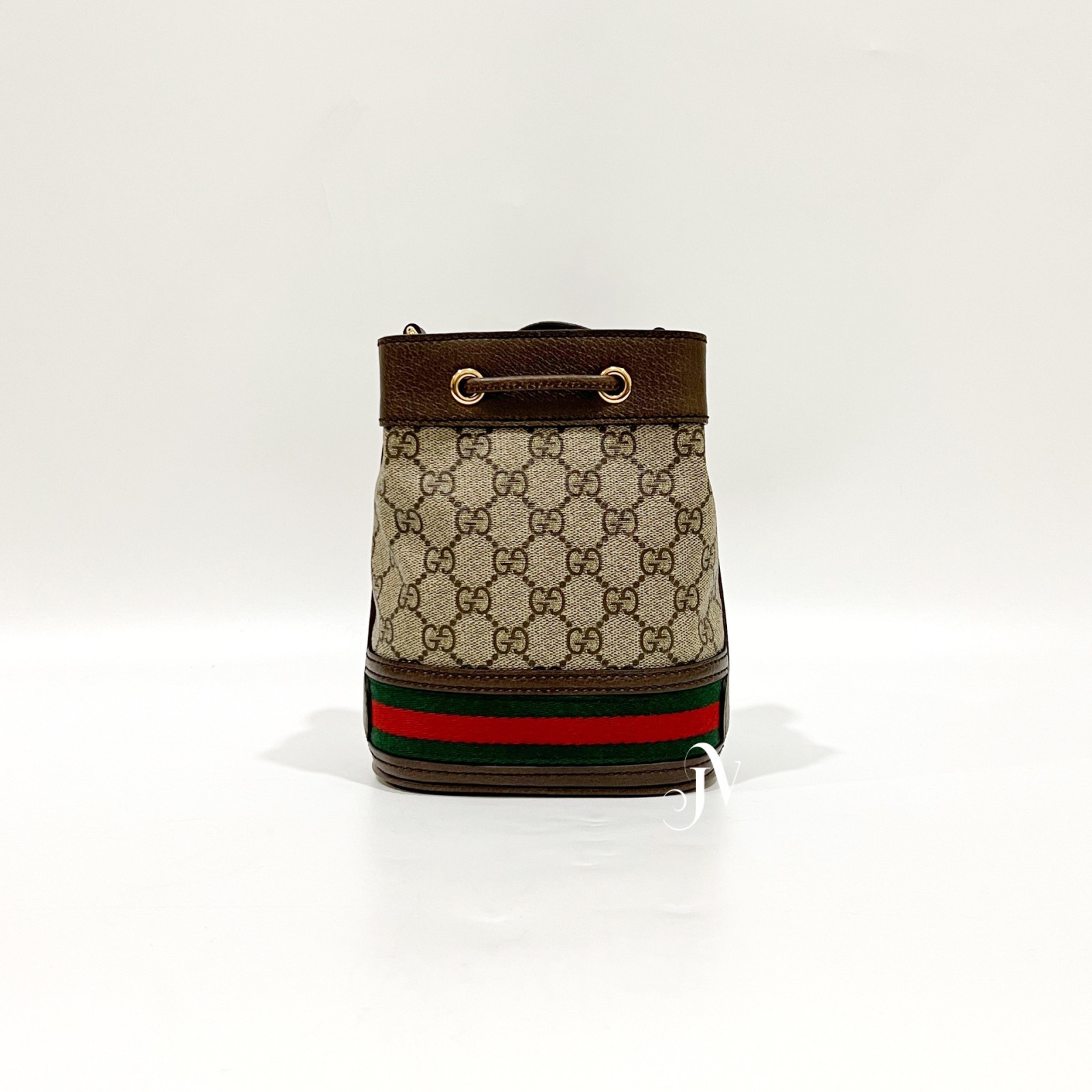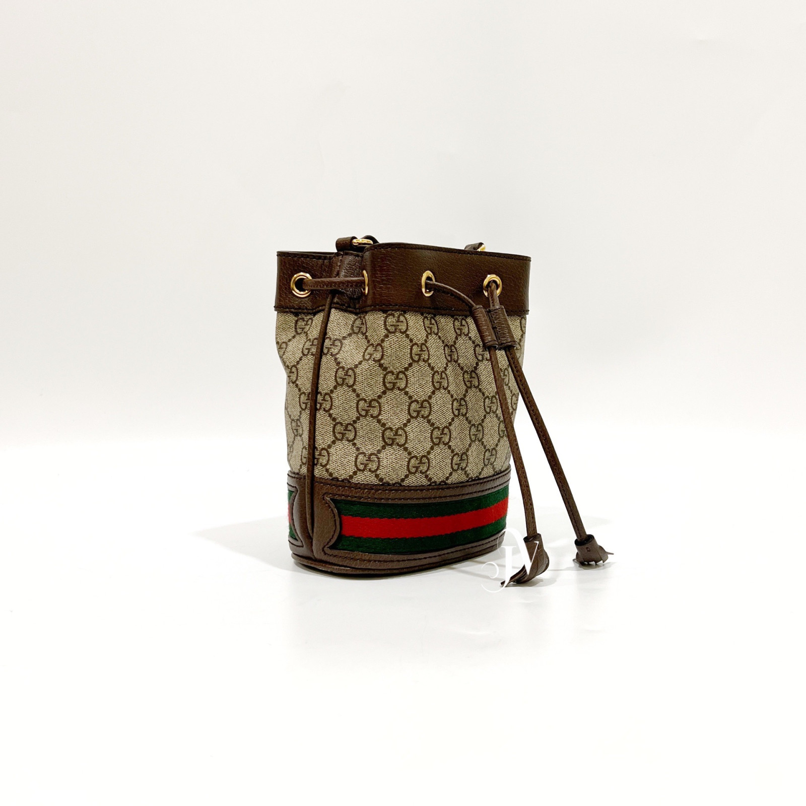 品牌| GUCCI款式| 小號水桶包尺寸| 約 W19 × H21 × D12 cm(依實際測量為準)背帶長度| 約 95–110 cm(可調式)材質| GG Supreme 老花帆布、牛皮飾邊、織帶背帶內層| 布質內裡開口方式| 束口設計顏色| 咖啡老花/綠紅綠織帶產地| Italy
