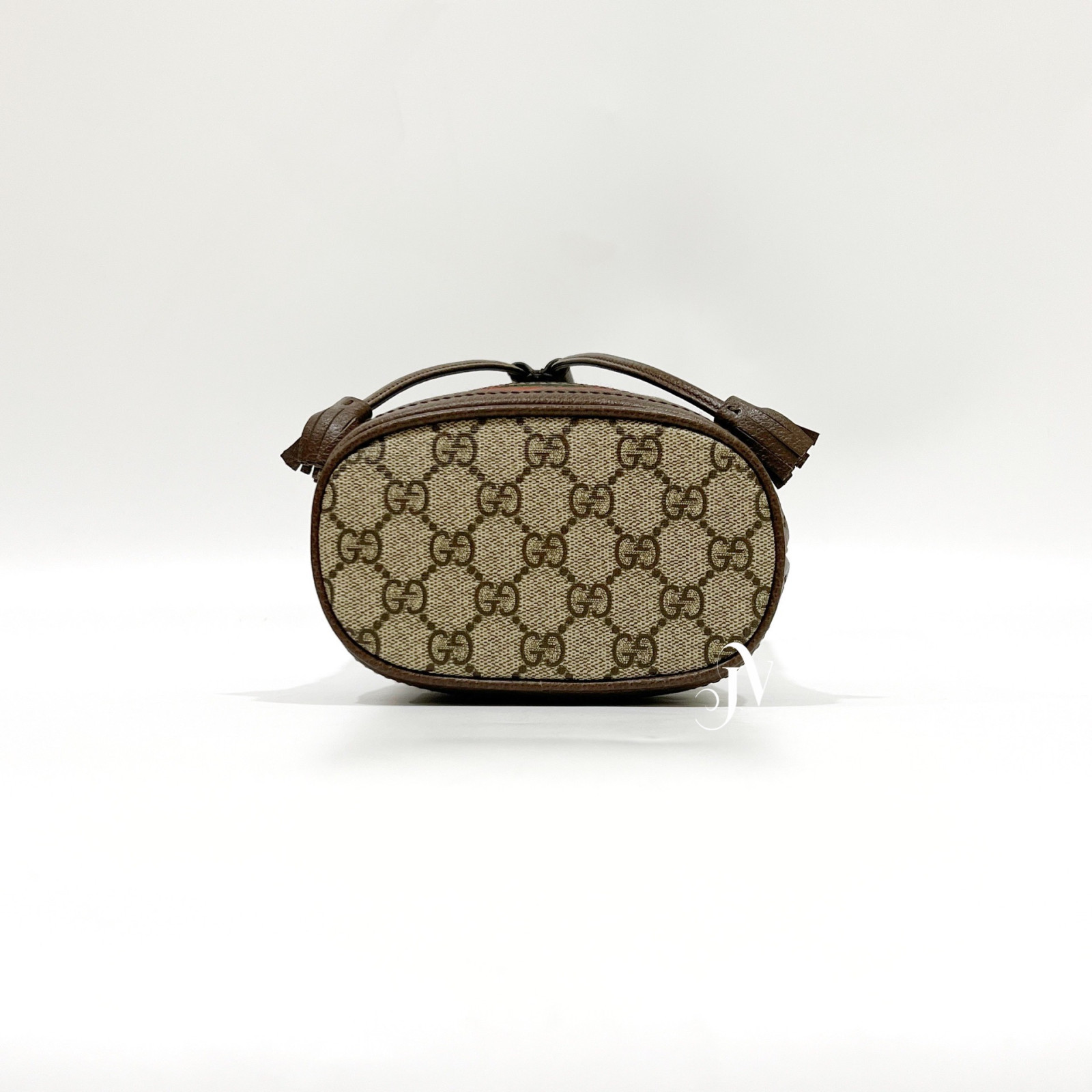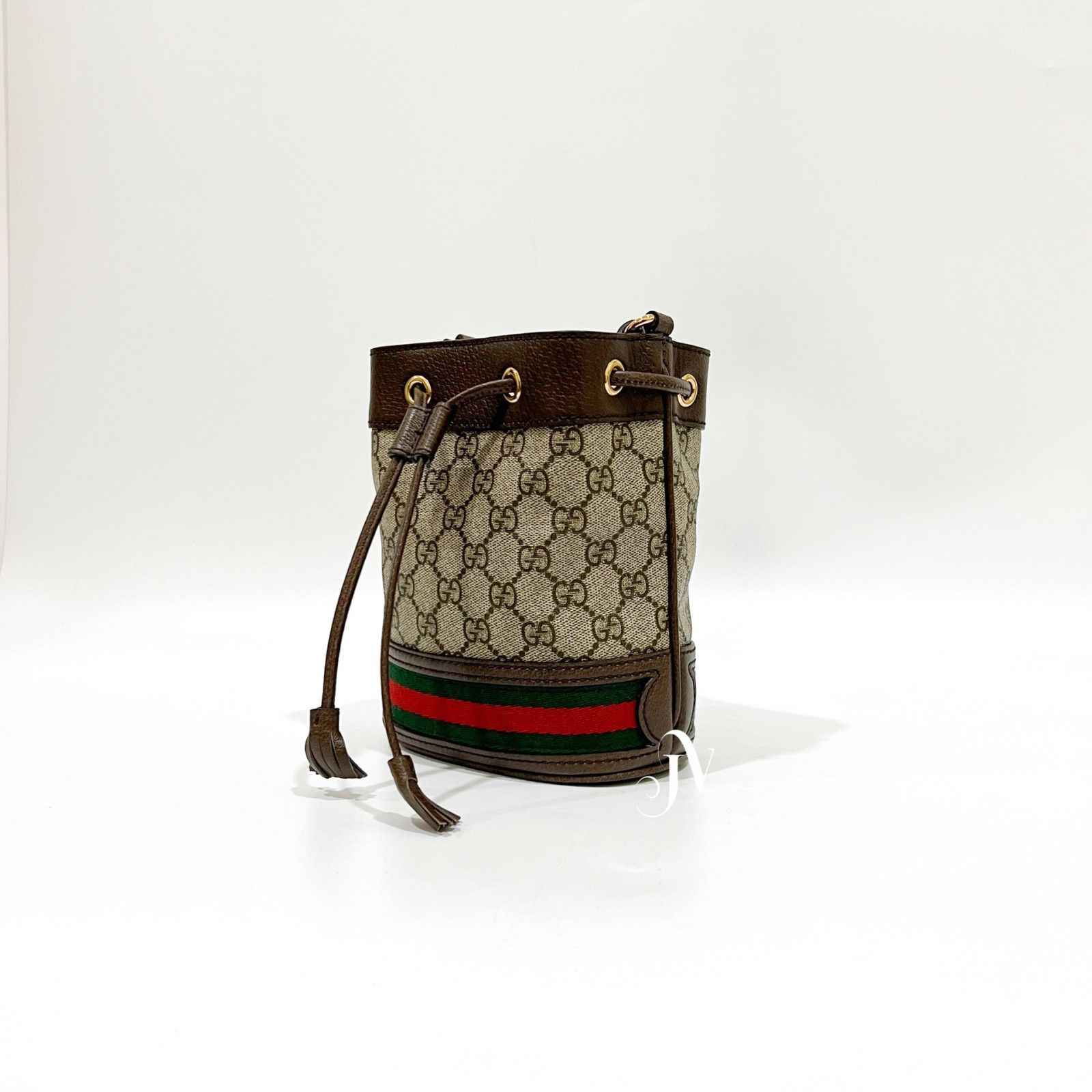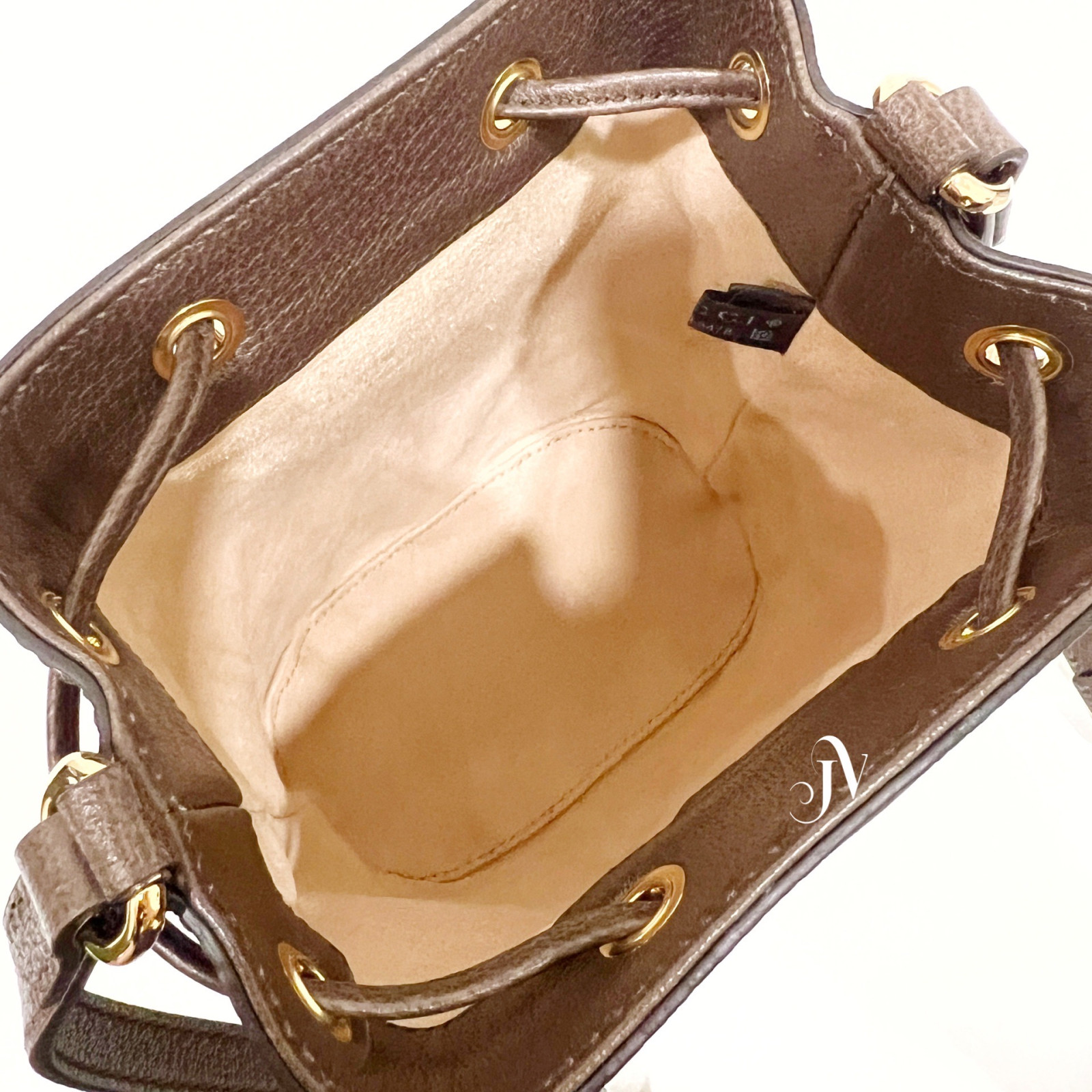 品牌| GUCCI款式| 小號水桶包尺寸| 約 W19 × H21 × D12 cm(依實際測量為準)背帶長度| 約 95–110 cm(可調式)材質| GG Supreme 老花帆布、牛皮飾邊、織帶背帶內層| 布質內裡開口方式| 束口設計顏色| 咖啡老花/綠紅綠織帶產地| Italy