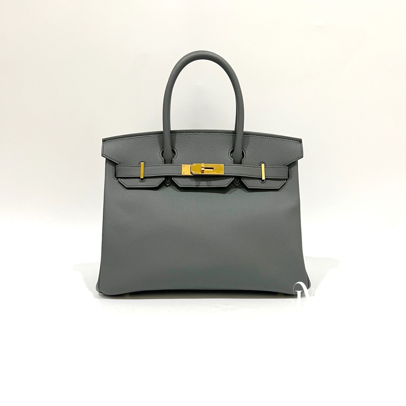 這款 Hermès Birkin 30 以清新優雅的 63 杏仁綠呈現,搭配經典金色金屬釦件,展現法式精品獨有的高貴與從容氣質。